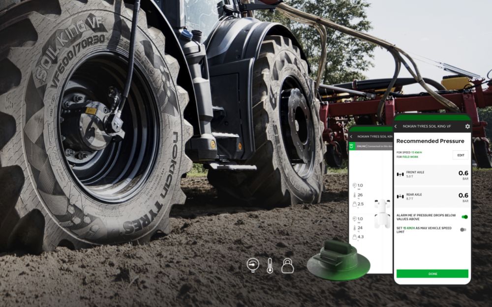 Den nya tekniken bygger på sensorer inuti däcken som mäter traktorns verkliga belastning och användningsförhållanden. Utifrån dessa värden ger systemet rekommendationer direkt i mobilen en app. Resultatet blir rätt tryck på rätt plats, vilket minskar markpackning, ökar effektiviteten och sänker driftskostnaderna.